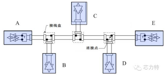 圖2 帶分支的主干總線形拓?fù)?/p>