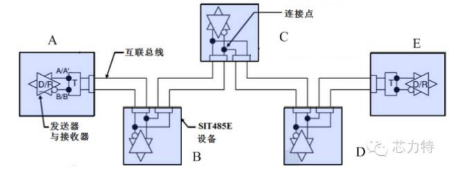一、菊花鏈形的RS485總線拓?fù)?/strong>
