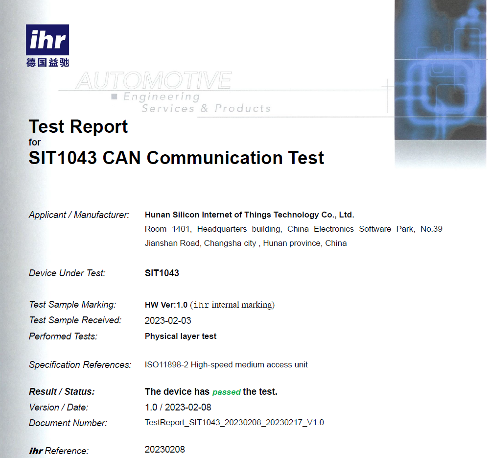 二、SIT1043Q CAN收發(fā)器通過(guò)德國(guó)益馳CAN通信一致性測(cè)試