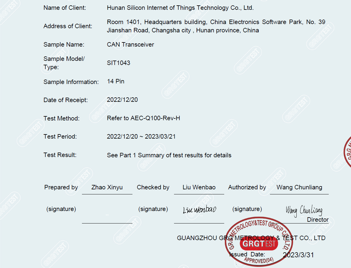 SIT1043Q通過(guò)第三方AEC-Q100車(chē)規(guī)認(rèn)證