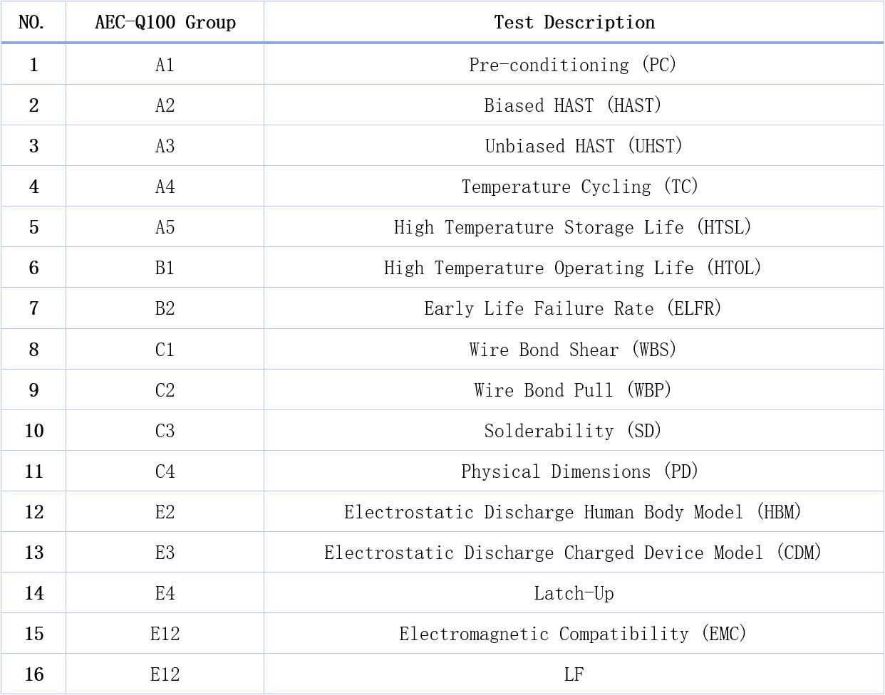 表1:SIT1043Q CAN收發(fā)器AEC-Q100測(cè)試內(nèi)容